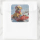 Sticker Carré Rhodesian Ridgeback Dog dans Sledge Noël