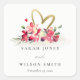 Sticker Carré Rouge or Orchidée Coeur Floral Aquarelle Mariage
