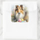 Sticker Carré Rough Collie Chien avec Oeufs de Pâques Fête