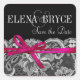 Sticker Carré Ruban et dentelle | fuschia noire