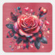 Un mignon autocollant d'une rose rougeâtre avec un ruban plaid, des coeurs et des fleurs sur un arrière - plan rouge.