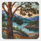 Sticker Carré Rustic mountain range landscape stain glass