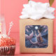 Une belle sirène japonaise dans un kimono, tenant un miroir qui reflète la lune et les étoiles. Ses cheveux sont dans un élégant updo et elle est entourée de fleurs de cerisiers.
