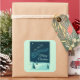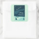 Ho-Ho-Ho Joyeux autocollant de Noël avec une illustration vintage de Père Noël dans son traîneau tiré par ses rennes. De petites étoiles arrosent le ciel nocturne. Des pins couverts de neige au sol. Vintage esprit rétro.