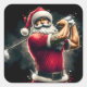Dressed in his traditional red suit, Santa Claus takes a swing on the golf course, showcasing a playful side during the holiday season. His long white beard and red hat add to the cheerful spirit while he focuses on the game.