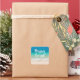 Enveloppe chrétienne scellée avec le texte « priant pour vous » sur un fond d'océan bleu. Autocollant carré présenté, avec d'autres options. À ajouter au dos des enveloppes lors de l'envoi de cartes « Meilleurs vœux de rétablissement », ou autres.