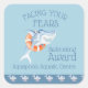 Requin faisant face à vos peurs encouragez junior nage prix autocollant. Idée de récompense pour les jeunes non-nageurs qui entrent dans l'eau et font face à leurs peurs. Joli requin blanc avec anneau de sauvetage orange. Art et design d'aquarelle peints à la main par Sarah Trett pour www.mylittleeden.com