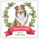 Sticker Carré Shetland Sheepdog Holly Banner Noël