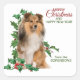 Sticker Carré Shetland Sheepdog Red Berry Holly Noël
