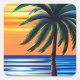 Sticker Carré Silhouette de palmier avec Ondes de coucher de sol