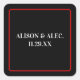 Simple autocollant personnalisé noir, rouge et blanc qui peut être utilisé avec n'importe quelle suite d'invitation! La police et les couleurs de notre design correspondent à "We're Getting Married". La suite Faire-part de mariage Las Vegas. Customisez avec vos noms et vos couleurs en cliquant sur le bouton "Modifier la conception" à droite de l'image. Ces autocollants peuvent être utilisés pour n'importe quel événement ou fête!