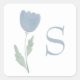 Sticker Carré Simple Monogramme Floral Aquarelle Bleu Poussiéreu