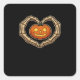 Sticker Carré Skeleton Mains Coeur avec Citrouille mignon Hall É