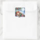 Sticker Carré Sleeping Christmas Elf with Calico Kitten