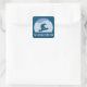 Un autocollant carré cool pour snowboarders. Il présente une silhouette de snowboarder dressée contre un paysage montagnard avec le mot shreddin, une expression de snowboard signifiant aller sur toute la neige.