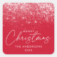Les Chrétiens modernes brodent featuring white snow flurries at the top of the design with a red background. "Merry Christmas" is displayed in a trendy white calligraphy script with your family name and the year shown below in white lettering. Use the solive holiday stickers to seal christmas presents, favor bags, and holiday enveloppopes.
