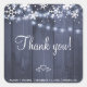 Texte modifiable favoriser autocollant avec des flocons de neige blancs rustiques, trois petits coeurs et des lumières scintillantes avec un blanc éditable script de remerciement sur arrière - plan de bois de grange gris foncé. Idéal pour votre hiver élégant rustique saisonnier thème mariage, baby shower ou autres occasions.