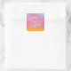 L'autocollant de favori "Bach Party" rose est un ajout amusant pour une fête de bachelorette avec le nom de la future mariée ci-dessus dans une police de caractères script. Le fond est coloré avec des couleurs joyeuses bleues et jaunes.