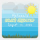 Le design est doté d'un soleil brillant, de nuages et d'herbe verte sur des bandes bleues. Le texte du nom et de la date est entièrement personnalisable.
