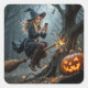 Une sorcière à balai en envoyant un texto sur son téléphone portable entre en collision avec un arbre près d'une lanterne clignotante.
