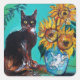 STICKER CARRÉ SOUCHES AVEC CHAT NOIR EN TURQUOISE BLEUE