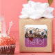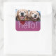 Ajoutez un peu de gaieté dorée à votre vie avec ces stickers mignons ! Design présente une photo de deux chiens de recherche d'or heureux qui sortent la tête d'une fenêtre de voiture. Le texte dit : "Bonjour !"