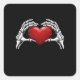 Sticker Carré Squelette Mains Tenant Un Coeur Rouge Design Class