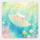 Sticker Carré Sunlit Manta Ray Gliding Through the Reef