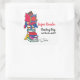 Lecture de jour lecture sur une pile d'autocollants de l'évènement du livre. Customisez avec votre propre date d'événement de jour de lecture et votre réalisation. Garçon de super-héros d'origine assis sur une pile de livres lisant dessin et design de livre de super-héros par www.mylittleeden.com