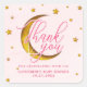 Baby shower merci autocollant présente un arrière - plan d'aquarelle rose sombre onirique rempli d'étoiles brillantes de parties scintillant d'or et d'une parties scintillant d'ombre de d'or.