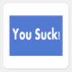 Célèbre arrière - plan bleu avec "You Suck !" imprimé en blanc.