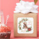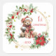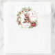 Sticker Carré Teddy Bear Foliage Poinsettia Bébé 1er Noël