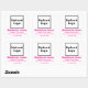 Autocollant personnalisable que vous pouvez mettre votre nom d'entreprise, adresse et numéro de téléphone. Vous pouvez l'utiliser comme matériel de marketing pour annoncer votre entreprise ou pour promouvoir votre marque auprès de clients ou de clients. Sticker que vous pouvez utiliser pour sensibiliser la marque. Vous pouvez également l'utiliser comme accessoire de matériaux d'emballage de produits. Les dessins sont des textes roses en forme d'arrière - plan et de carré blanc. Pour customiser cet autocollant, téléchargez votre logo d'entreprise, tapez votre nom d'entreprise ou de société, votre adresse et votre numéro de téléphone. Après avoir téléchargé le logo et tapé des textes, veuillez vérifier l'apparence. Si l'apparence vous plaît, vous pouvez passer votre commande maintenant. Si vous avez besoin de redimensionner et déplacer le logo et les textes pour tenir sur cet autocollant ou sur d'autres tailles que vous choisirez, s'il vous plaît changer dans l'outil de conception. Vous pouvez également effectuer d'autres modifications en fonction de l'apparence que vous préférez dans l'outil de conception, comme changer la couleur arrière - plan, la couleur de police et le style de police.