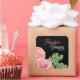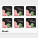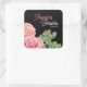 Les autocollants simples de carré rose présentent des fleurs roses et des feuilles verts faits avec un stylo marqueur. Une couleur de marqueur rose de l'atmosphère rose fait faire-part de mariage.