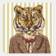 Cette conception comprend un tigre portant une veste intelligente et une cravate à arc rouge.