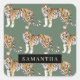 Sticker Carré Tigres d'aquarelle verte tropicale Motif avec nom