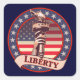 Rendu classique de style poster de Torch of Liberty avec drapeau américain, rond. Détail de la Statue de la Liberté.