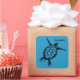 Gravure originale sur bois d'une tortue de mer sur un autocollant bleu.