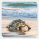 Sticker Carré Tortue Marchant Sur Le Sable De Plage Humide