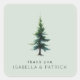 This wedding sticker features a minimalist design with a centered illustration of an evergreen tree, rendered in various shades of green to create depth and texture. The layout is clean and balanced, emphasizing the tree's natural beauty against a soft, neutral background. Below the tree, elegant serif typography spells out "thank you" followed by names in uppercase letters, adding a personalized touch. The overall mood is serene and appreciative, making it perfect for expressing gratitude at weddings or other special occasions.