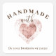 Sticker Carré Trendy Rose Gold Effect Handmade with Love Artisan