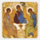 L'oeuvre/icône Antique Andrei Rublev représentant le Père, le Fils et le Saint-Esprit assis à une table. Les images semblent avoir des ailes d'anges.