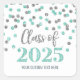 Classe de nom personnalisée de 2025 autocollants de graduation avec motif de confetti argenté et turquoise avec texte de style lettré moderne.