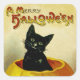 Illustration vintage de carte de voeux Halloween avec un chaton noir à l'intérieur d'un Jack o'Lantern!