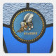 Un logo unique de Seabee intégré dans un vitrail orné d'abeilles.