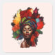 La palette de couleurs audacieuse et dynamique attire instantanément l'oeil et crée un sentiment d'énergie et de vitalité. La combinaison du jaune, du rouge et du vert représente la joie, la passion et la croissance, évoquant une réponse émotionnelle puissante. Les couleurs joliment assorties aux traits de la femme afro-américaine, accentuant sa force et son éclat.
