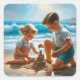 Sticker Carré Une petite fille et un garçon Bâtir un château de