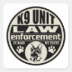 Round K9 with K9 Unit Law Enforcement text. Lower In Dogs We Trust and dog paw shapes next to K9 German Shepard dog. Off white and black colors, great K9 Unit venin pour les artisans et les supporters !