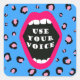 Utilise ta voix ! Parle, même si ta voix tremble. arrière - plan Empreinte de léopard en bleu et rose présente une bouche rose vif criant.