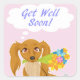 Ce chiot de dachshund espère vous remonter le moral avec un joli bouquet de fleurs. La carte dit : "Va bien bientôt".